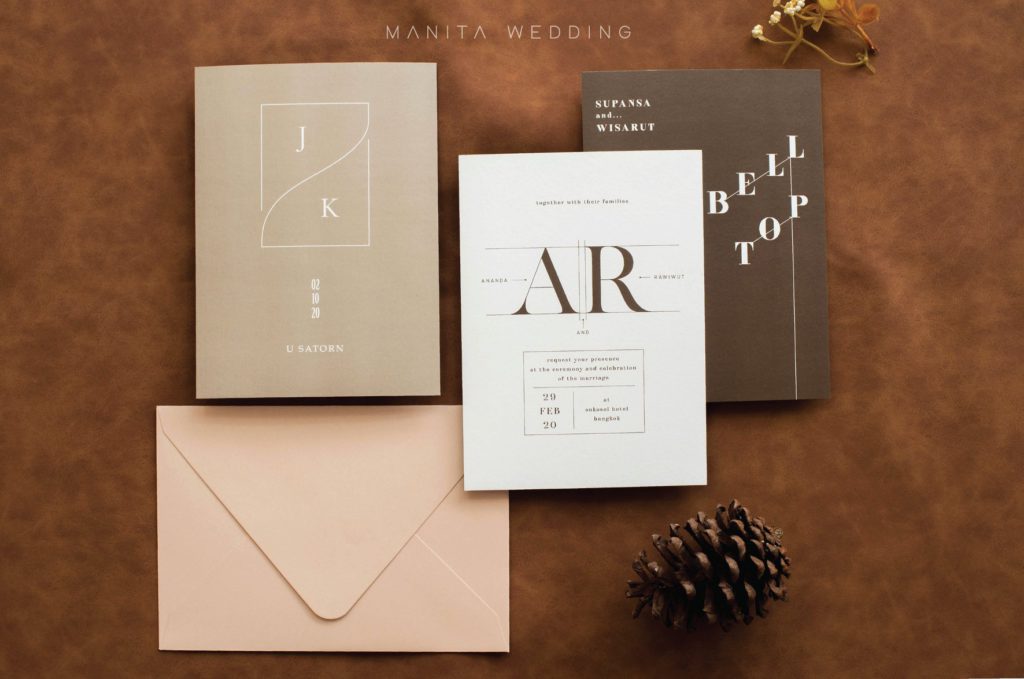 พูดถึงความมินิมอลก็ต้องนึกถึงความคลีนสะอาดตา แต่ใครที่รู้สึกว่าอยากเพิ่มกิมมิกให้การ์ดดูน่าสนใจขึ้นมาหน่อย ให้ผสมผสานการจัดวางตัวอักษรสวยๆ ดีไซน์เก๋ๆ สไตล์ Typography เข้าไปเลย หรือจะเลือกใช้สีสันที่ดูโดดเด่นขึ้นมาอีกนิด อย่างเช่น สีแดงเบอร์กันดี สีน้ำตาล การ์ดเชิญที่ดูเรียบง่าย ก็จะสวยทันสมัยไม่เหมือนใครขึ้นมาทันตาเลยล่ะ