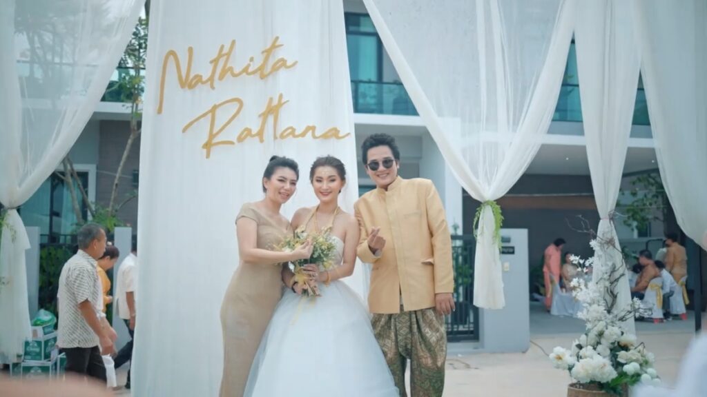 คุณปลาเริ่มเล่าก่อนเลยว่า ทั้งสองมีความเห็นตรงกันว่าธีมงานแต่งงานเนี้ย “อยากให้มันออกมาแบบสบาย ๆ ” โดยช่วงที่ทั้งคู่เลือกจัดงานเป็น ช่วงโควิดแพร่ระบาด ทำให้ทางโรงแรมไม่สามารถจัดงานให้ได้ ทั้งคู่จึงมีไอเดียว่าควรจะจัดที่บ้าน “พวกเราตั้งใจจัดธีมงานให้ออกมาแล้วแขกที่มาในงานเรา มีความอบอุ่น” คุณปลากล่าว และตั้งใจสื่อทุกอย่างภายในงานให้มันเป็นตัวตนของเรา 2 คน คุณปลาเล่าทิ้งท้าย