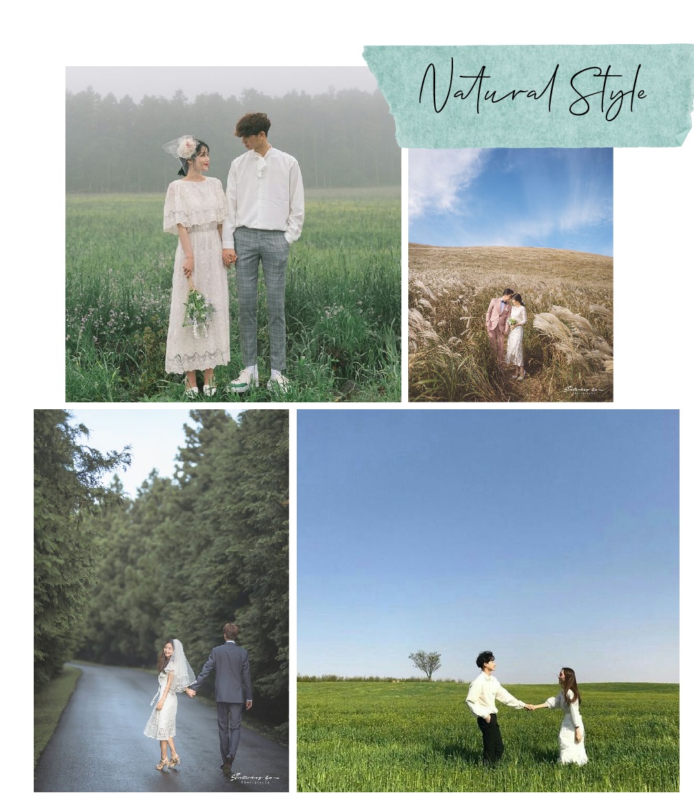 ใครเล็ง ๆ แนวธรรมชาติเอาไว้ ต้องไม่พลาด Mood แบบนี้เลยค่ะ ซึ่งโดยส่วนใหญ่แล้วจะเน้นเสื้อผ้าโทนสีขาวหรือ Earth Tone ค่ะ ส่วนการโพสก็ไม่ได้หวือหวา แค่ยืนจ้องตากัน จูงมือเดินเล่นในป่า แค่นี้ก็ฟินแล้วค่ะ ส่วน Location ของไทยถ้าใกล้ ๆ กรุงเทพฯ ก็คงเป็นเขาใหญ่ แต่ถ้าใครมีเวลาก็อาจจะไปแถวภาคเหนือไปเลยก็ได้ค่ะ เช่น เชียงใหม่ หรือน่าน ยิ่งถ้าได้ไปเดินถ่ายหน้าหนาวด้วย ยิ่งได้ฟีลที่ดีเข้าไปใหญ่เลยนะคะ