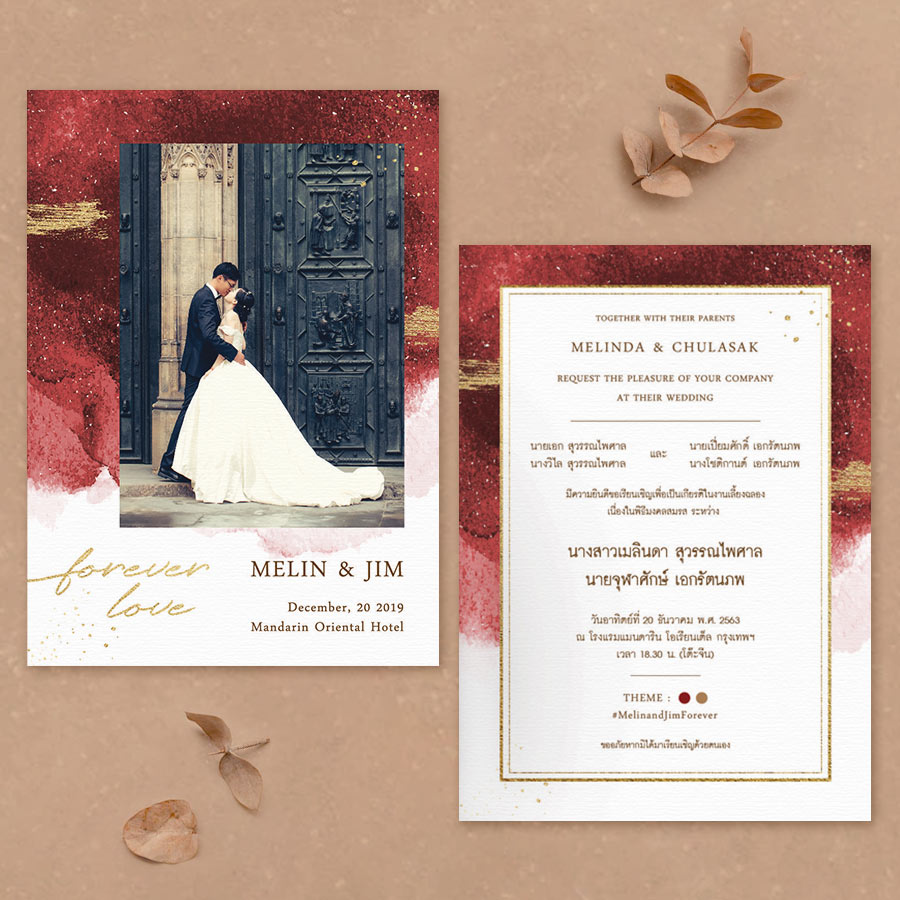 • จำนวนขั้นต่ำในการสั่งการ์ดแต่งงานคือ 50 ใบ