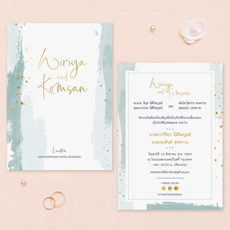• จำนวนขั้นต่ำในการสั่งการ์ดแต่งงานคือ 50 ใบ