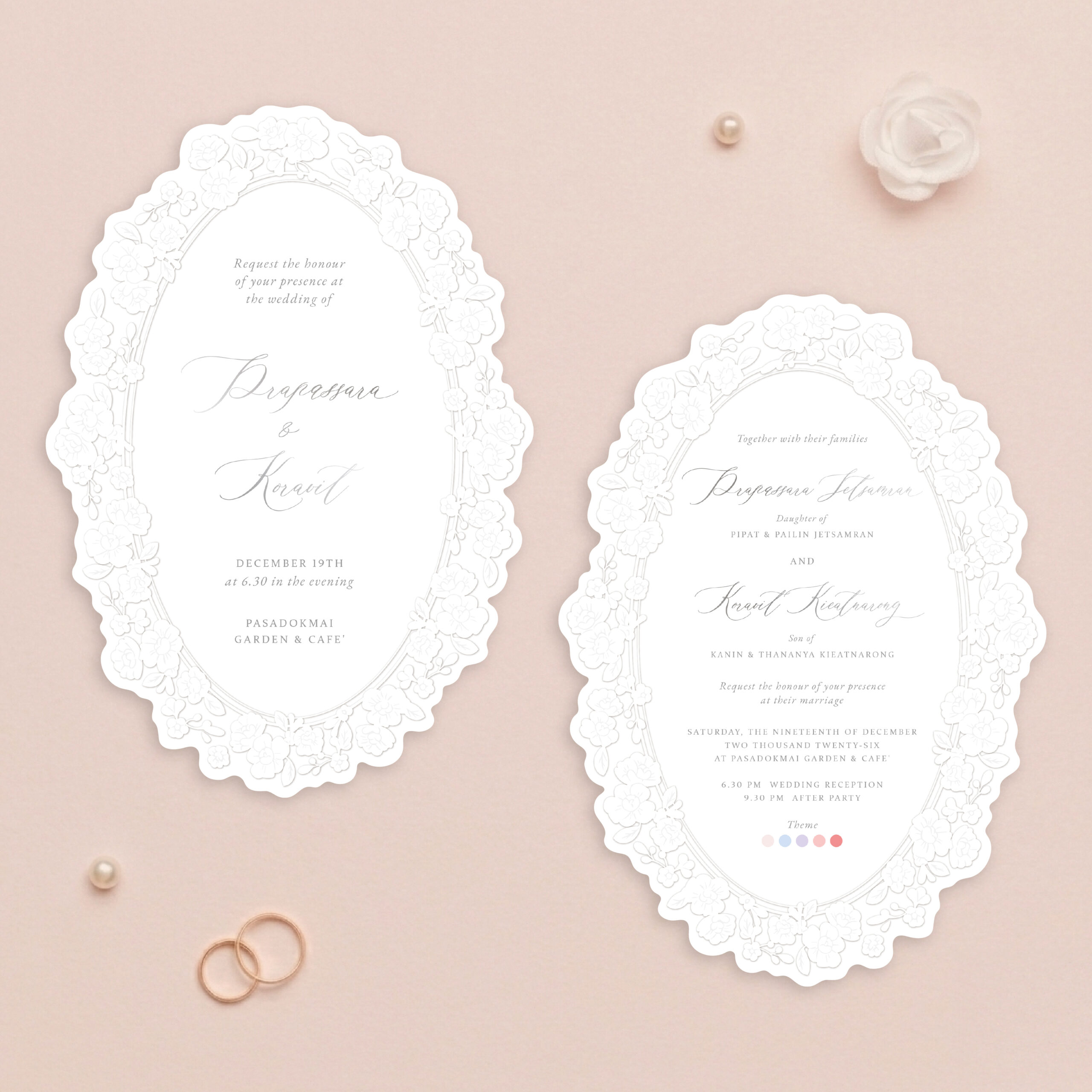 แบบการ์ดแต่งงาน ทุกใบออกแบบโดยทีมงานดีไซเนอร์ของมานิตา ที่ได้คว้ารางวัลรับดับประเทศมาแล้วมากมาย การ์ดแต่งงานของเราออกแบบโดยมีแนวคิดร่วมสมัยสามารถเข้าได้กับสไตล์การจัดงานแต่งงานที่หลากหลาย การ์ดทุกใบผลิตดวยเครื่องพิมพ์ Hp Indigo Press ซึ่งมีคุณภาพสูงที่สุดในกระบวนการผลิต หากคุณมีคำถามหรือคำขอพิเศษใดๆ สามารถติดต่อเราได้ทางช่วงทางต่างๆที่มี