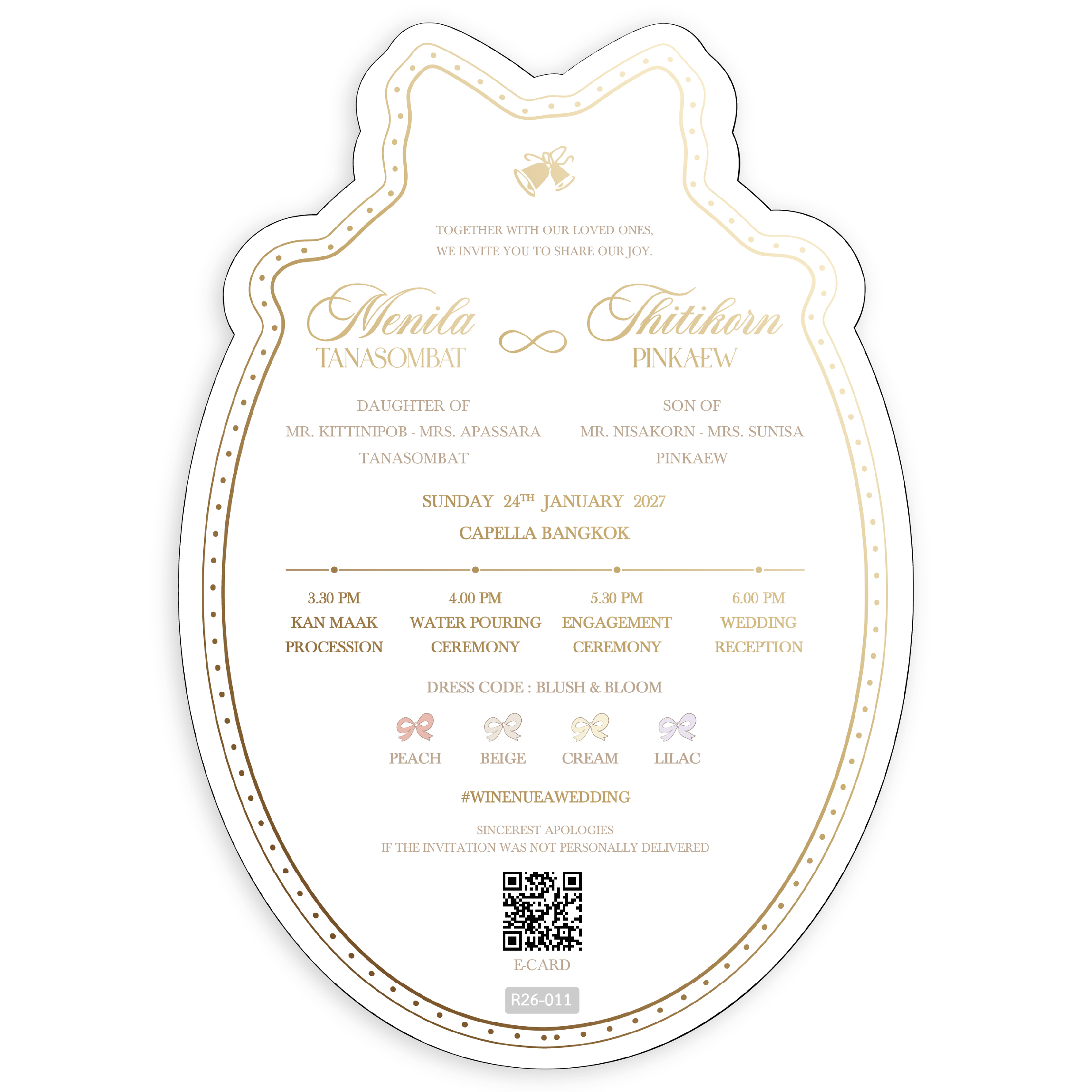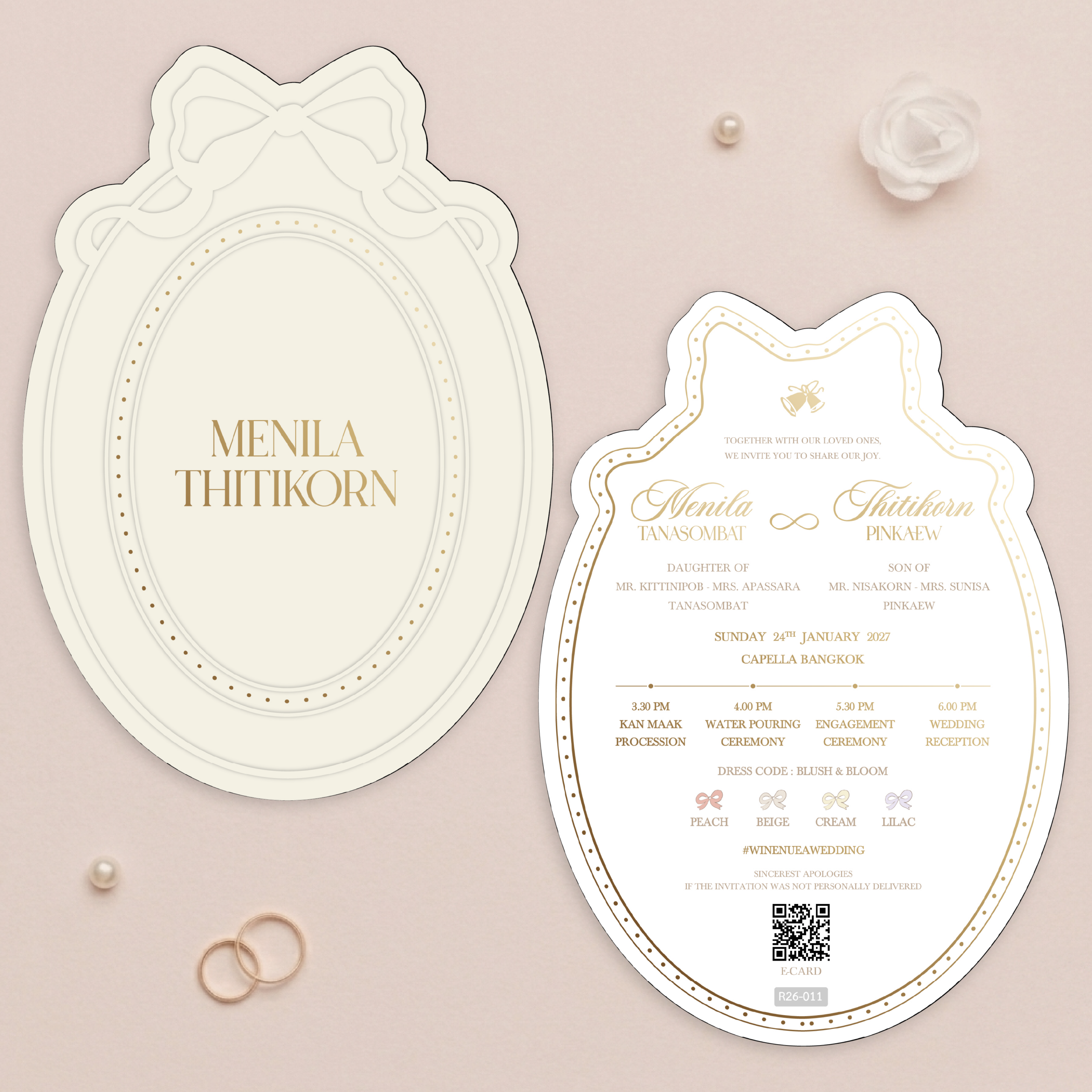 แบบการ์ดแต่งงาน ทุกใบออกแบบโดยทีมงานดีไซเนอร์ของมานิตา ที่ได้คว้ารางวัลรับดับประเทศมาแล้วมากมาย การ์ดแต่งงานของเราออกแบบโดยมีแนวคิดร่วมสมัยสามารถเข้าได้กับสไตล์การจัดงานแต่งงานที่หลากหลาย การ์ดทุกใบผลิตดวยเครื่องพิมพ์ Hp Indigo Press ซึ่งมีคุณภาพสูงที่สุดในกระบวนการผลิต หากคุณมีคำถามหรือคำขอพิเศษใดๆ สามารถติดต่อเราได้ทางช่วงทางต่างๆที่มี