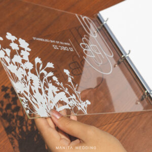 ของตกแต่ง สมุดเซ็นต์อะคริลิค ขนาด A4 ปกทำจากอะคริลิคหนา 3 มม. เข้าเล่มด้วยห่วงเหล็ก ด้านในใช้กระดาษขาว ไม่มีเส้น