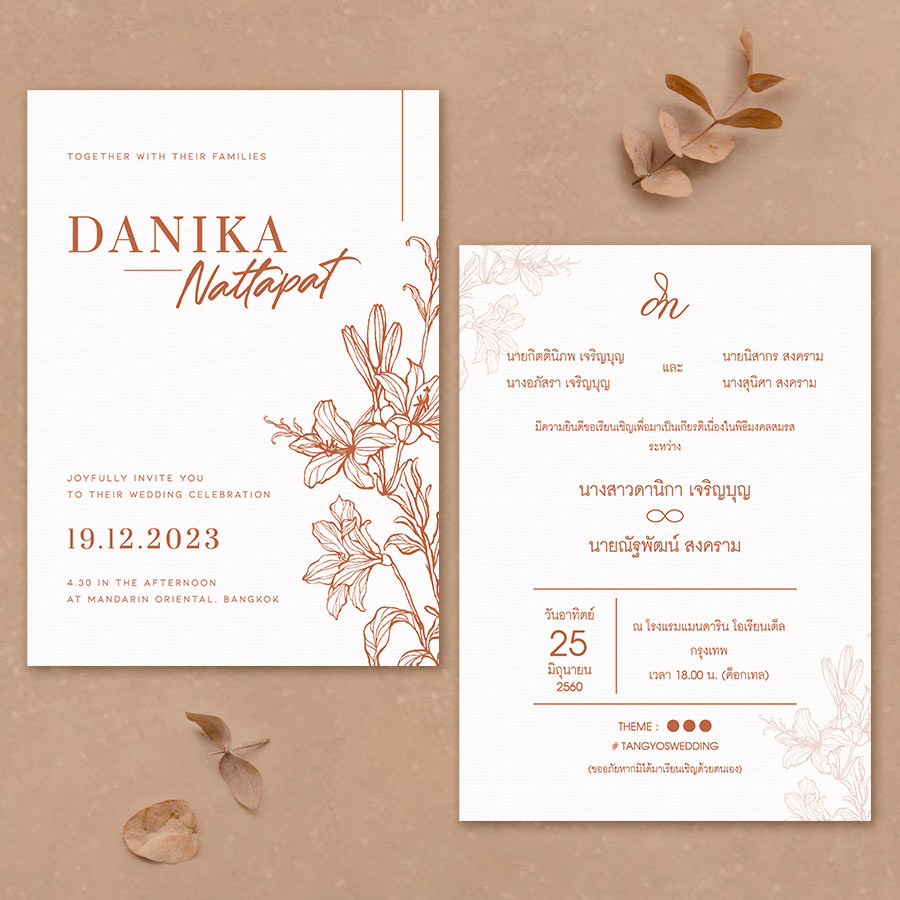 การ์ดแต่งงานทุกใบออกแบบโดยทีมงานดีไซเนอร์ของมานิตา ที่ได้คว้ารางวัลระดับประเทศมาแล้วมากมาย การ์ดแต่งงานของเราออกแบบโดยมีแนวคิดร่วมสมัย สามารถเข้าได้กับสไตล์การจัดงานแต่งงานที่หลากหลาย เลือกพิมพ์ลงบนกระดาษได้หลายชนิด